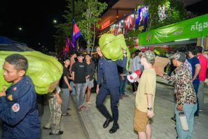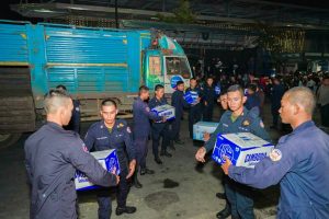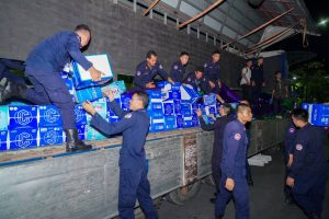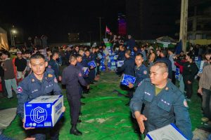 នាយប់ថ្ងៃទី១៣ ខែធ្នូ ឆ្នាំ២០២៥ កម្លាំងអាវុធហត្ថរាជធានីភ្នំពេញ បានបន្តចូលរួមការពារសន្តិសុខ សុវត្ថិភាព រក្សាសណ្តាប់ធ្នាប់ និងជួយរៀបចំលើកដាក់ជញ្ជូនស្បៀង និងសម្ភារៈចាំបាច់ផ្សេងៗ ចេញពីទីតាំងកន្លែងទទួលជំនួយសម្រាប់ជូនទៅបងប្អូនជនភៀសសឹក និងបងប្អូនកងទ័ពនៅជួរមុខ ត្រង់ចំណុច ហាង Eatmore បឹងកក់ រាជធានីភ្នំពេញ។