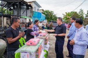 នារសៀល ថ្ងៃទី២៣ ខែវិច្ឆិកា ឆ្នាំ២០២៥ ឯកឧត្តម ឧត្តមសេនីយ៍ឯក រ័ត្ន ស្រ៊ាង មេបញ្ជាការរង កងរាជអាវុធហត្ថលើផ្ទៃប្រទេស មេបញ្ជាការ កងរាជអាវុធហត្ថរាជធានីភ្នំពេញ និងជាប្រធានក្រុមការងាររាជរដ្ឋាភិបាលចុះជួយមូលដ្ឋានខណ្ឌដង្កោ និងមានការចូលរួមពី លោក ប៊ុន ណារុំ អភិបាលរង នៃគណៈអភិបាលខណ្ឌដង្កោ រួមនឹងក្រុមការងារ បាននាំយកអំណោយ ឧបត្ថម្ភ និងសួរសុខទុក្ខដល់ប្រជាពលរដ្ឋចំនួន១៩គ្រួសារ (មានចំនួន ១២ខ្នងផ្ទះ) ដែលត្រូវបានអគ្គិភ័យឆាបឆេះគេហដ្ឋាន កាលពីយប់ ថ្ងៃទី២១ ខែវិច្ឆិកា ឆ្នាំ២០២៥ នៅចំណុចផ្លូវលំ ស្ថិតក្នុងភូមិរលួស សង្កាត់ជើងឯក ខណ្ឌដង្កោ រាជធានីភ្នំពេញ។