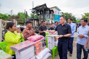 ក្នុងឱកាសនោះ ឧត្តមសេនីយ៍ឯក រ័ត្ន ស្រ៊ាង បានចូលរួមសម្តែងនូវការសោកស្តាយ ចំពោះហេតុការណ៍អគ្គីភ័យដែលបានបំផ្លាញលំនៅឋាន និងទ្រព្យសម្បត្តិមានចំនួន ១២ខ្នងផ្ទះ ព្រមទាំងបាននាំយកអំណោយចែកជូនក្នុង០១គ្រួសារ ទទួលបាន ៖ អង្ករ០២ការុង, មីជាតិ០២កេស, ទឹកសុទ្ធ០២កេស, កន្ទេល០១ និងភួយ០១ រួមនឹងថវិកា ២០ម៉ឺនរៀល (ដោយឡែកគ្រួសារដែលមានអ្នកស្លាប់ និងរងរបួសទទួលបានថវិកា ១លានរៀល)៕
