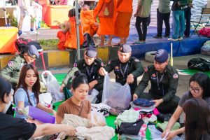 នារសៀលថ្ងៃទី១៥ ខែធ្នូ ឆ្នាំ២០២៥ កម្លាំងអាវុធហត្ថរាជធានីភ្នំពេញ បានបន្តចូលរួមការពារសន្តិសុខ សុវត្ថិភាព រក្សាសណ្តាប់ធ្នាប់ និងជួយរៀបចំលើកដាក់ជញ្ជូនស្បៀង និងសម្ភារៈចាំបាច់ផ្សេងៗ នៅទីតាំងកន្លែងទទួលជំនួយសម្រាប់ជូនទៅបងប្អូនជនភៀសសឹក និងបងប្អូនកងទ័ពនៅជួរមុខ របស់លោក អ៊ុក វណ្ណដេ និងក្រុមការងារ ស្ថិតក្នុងមជ្ឈមណ្ឌលសន្និបាត និងពិព័រណ៍កោះពេជ្រ រាជធានីភ្នំពេញ។